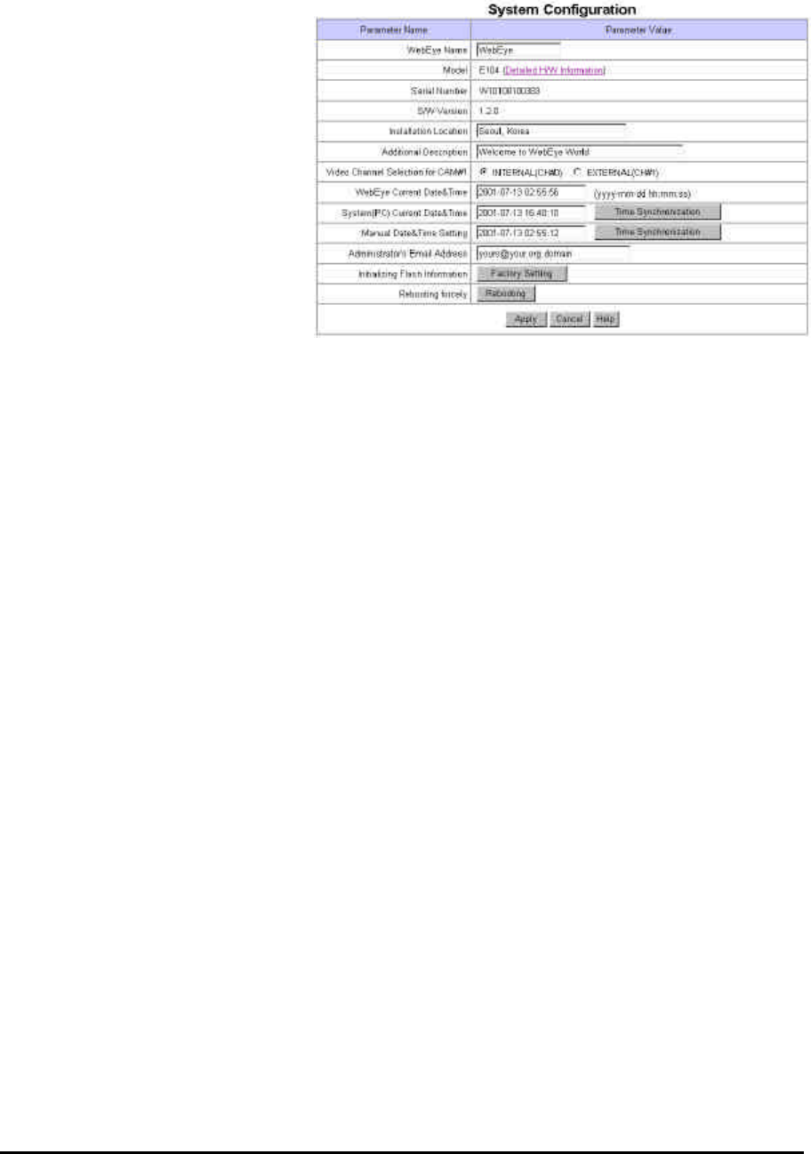 에 입력한 후 ‘시간 동일화(Time Synchronization)’ 버턴을 눌러 그 시간을 WebEye에 입력할 수도